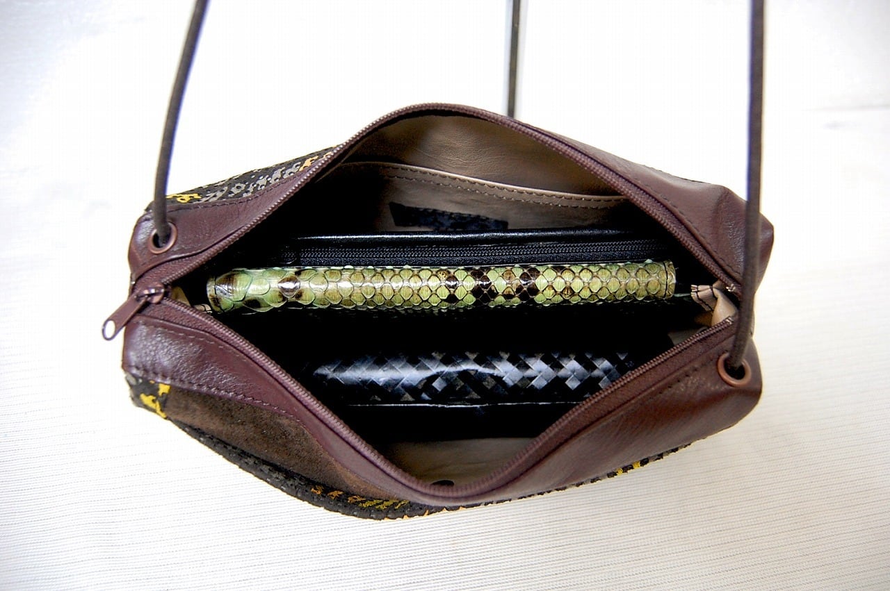 楕円形ポシェット (牛革×豚革・紅葉柄)